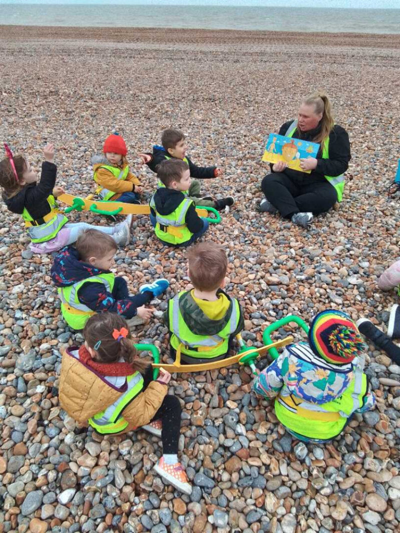 He visited two of our nurseries to run illustration workshops, and read his stories to the children. There was also lots of activities planned around his fantastic books. These includedmessy play, story time, junk modelling, arts and crafts and a trip to the beach. The children especially enjoyed trying to rescue toy animals from jelly, playing with a giant red cardboard box rocket and reading Nick’s books at the beach.